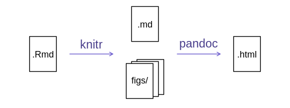 The Markdown and figure documents are then processed by the tool pandoc, which converts the